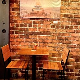 It was a quiet night when I went. good place for a date and great wine. The bartender was so nice we had great conversations and good laughs. Only thing bad about it is that it's hidden lol I found this place by luck I wanted a drink before going to dinner next door so I walked around the block and peaked in. They have art on the walls you can purchase. Good vibes and great wine